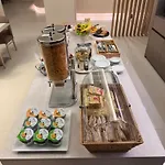 O pequeno-almoço bufê variado é servido todas as manhãs. O jantar no restaurante pizza restaurant é baseado em cozinha Italiaanse.